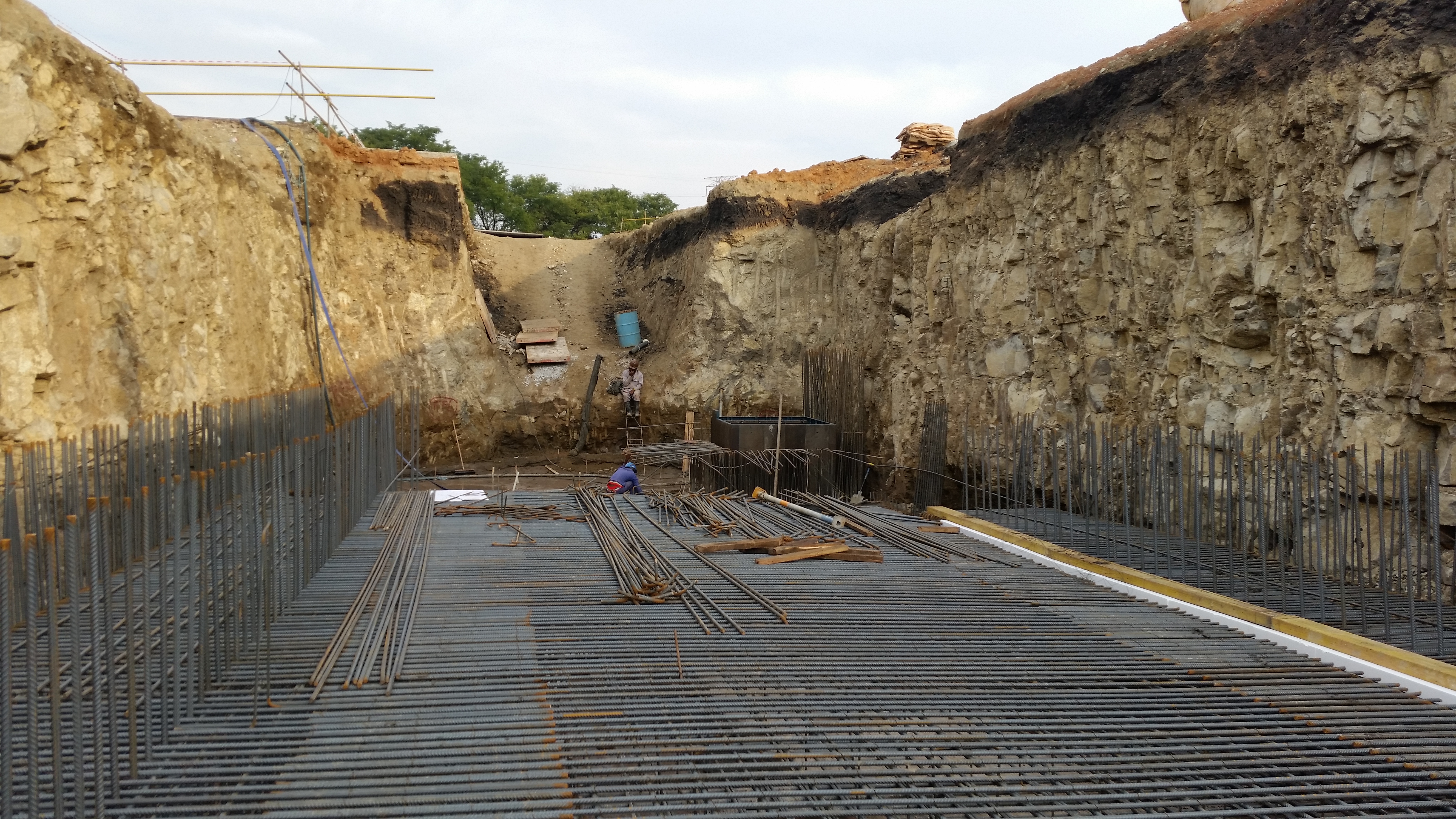 Press Shop Column Foundations – Installed on stable norite rock, about 3m below the surface, to bypass the problematic clay.